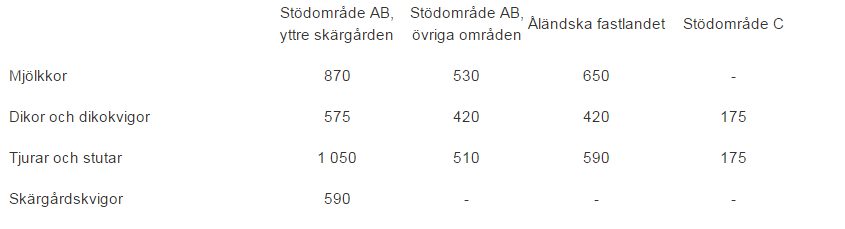 Produktionskopplat stöd betalas i december för nötkreatur enligt denna tabell (euro/djur):