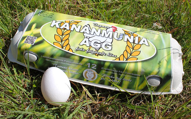 Ägg från Kvarnfors gård i Pörtom. Här finns 24 000 frigående höns som värper sex ägg i veckan. En del av äggen säljs lokalt och en del exporteras utomlands.