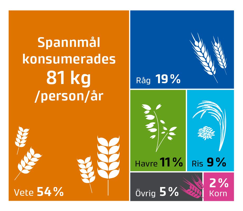 Den totala konsumtionen av spannmål har varit stabil de senaste åren. Enligt näringsbalansen har konsumtionen legat på strax under eller strax över 80 kilo per person. År 2020 var totalkonsumtionen av spannmål enligt de preliminära beräkningarna cirka 81 kilo per person.